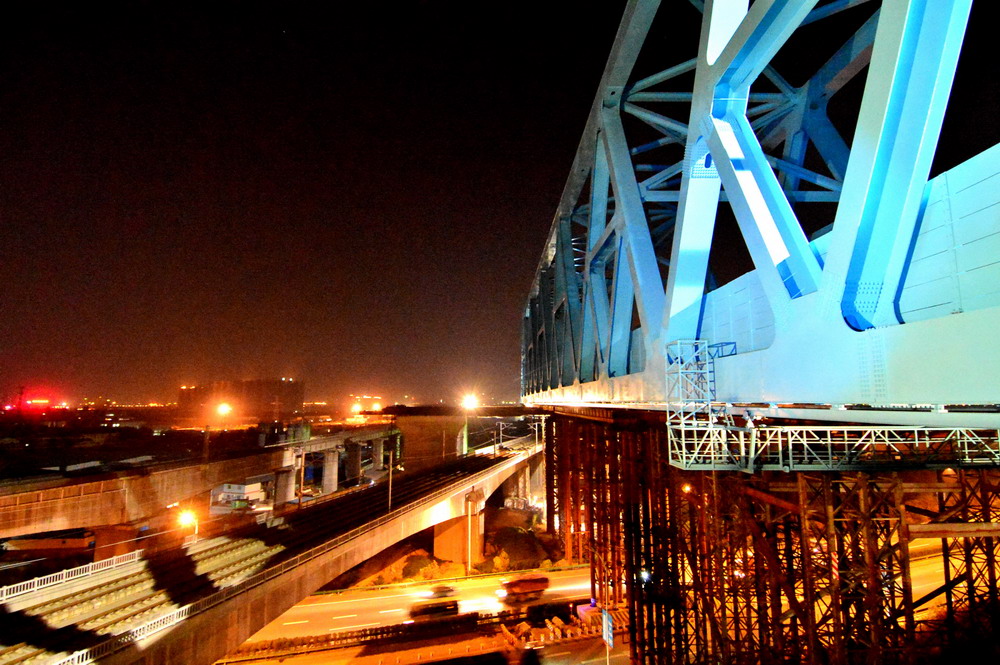 滬通鐵路蕰藻浜特大橋雙線128米鋼桁梁圖