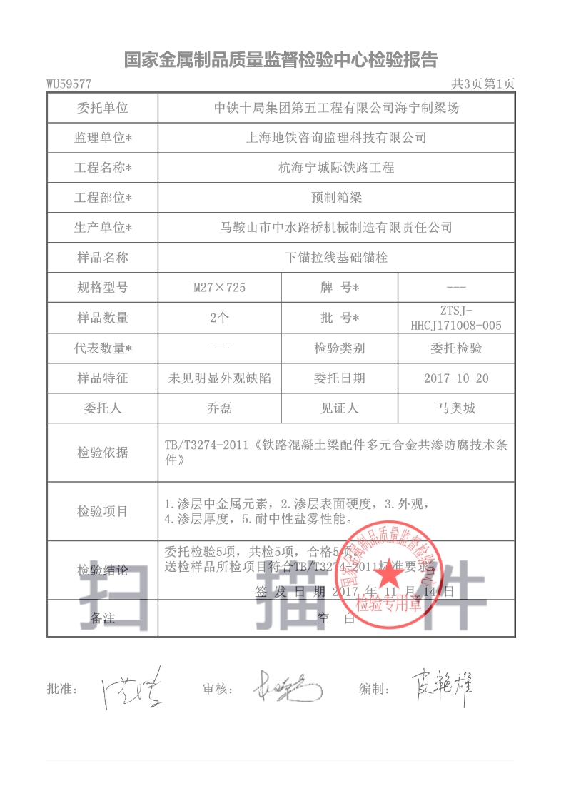 錨栓產(chǎn)品檢測報告